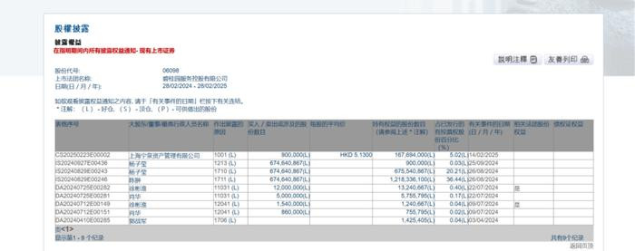 港交所披露易最新信息显示,2月14日,上海宁泉资产管理有限公司增持90万股碧桂园服务,每股均价5.13港元,涉及资金约461.7万港元,持股比例突破5%,达到5.02%,越过举牌线,首次举牌碧桂园服务。